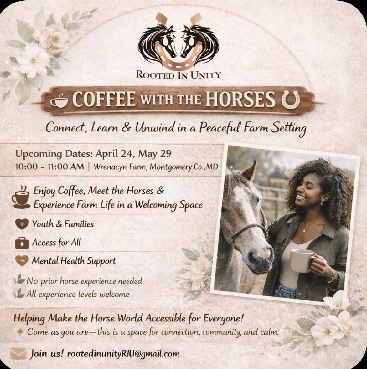 Enjoy coffee or tea as you meet our horses, hear their stories, and get a closer look at how we care for them and incorporate them into our programs. Whether you’re watching, visiting, or simply sharing the space, this is a welcoming opportunity to connect with both the animals and our community.